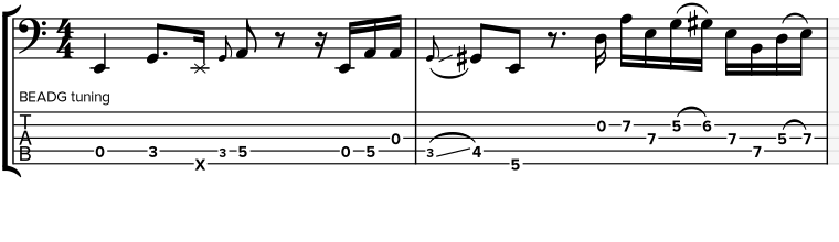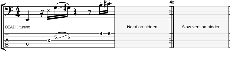 | L378 Funky E Bass groove with open string fill |