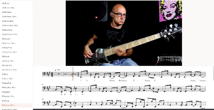 Avrai a disposizione le partiture estremamente dettagliate di batteria e basso, visualizzate in perfetto in sync con i video.