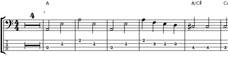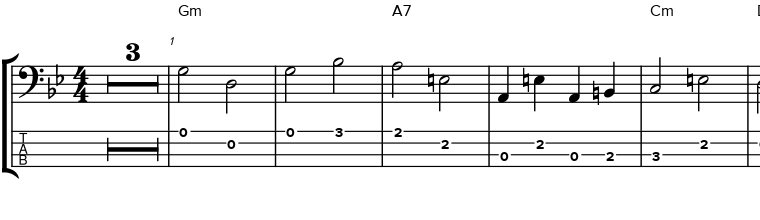 For each of the 16 tunes, Arnoud plays a bassline while a rhythm guitarist plays the chords. The audio is mixed so you can hear the bass clearly, and each note is notated in standard notation and (for those coming from electric bass) tablature. As in every Soundslice-produced course, the video is synced with notation, so you know exactly what’s being played and never get lost while learning and practicing.