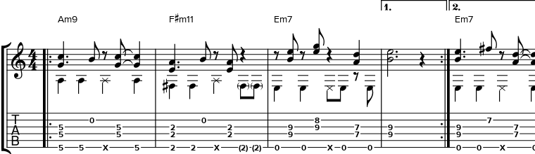 This course is approachable if you know your beginning guitar chords and triads, and is recommended for those interested in fingerstyle playing.