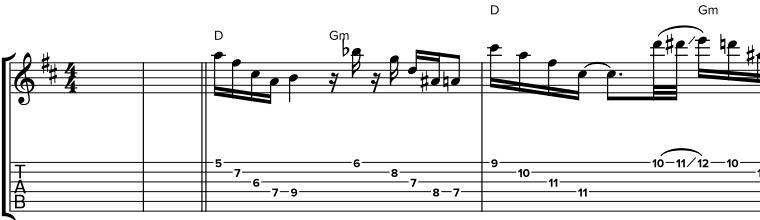 - Some little technique lessons on how to play a specific sweep-lick and a single string lick.