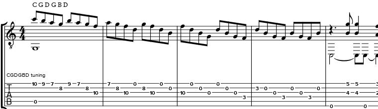 The Tuning is "C Wahine" CGDGBD