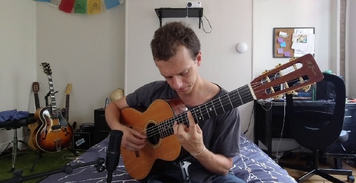 This composition utilizes advanced reharmonization as well as contrapuntal techniques. It will help you improve your Fingerstyle playing and give you new ideas on how to use a Song you like as a basis for a new composition.