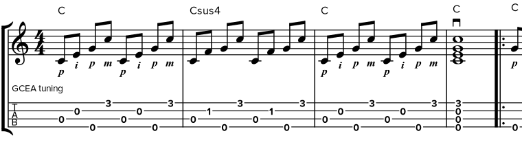 | Patrón 1 - Ukelele Fingerstyle |