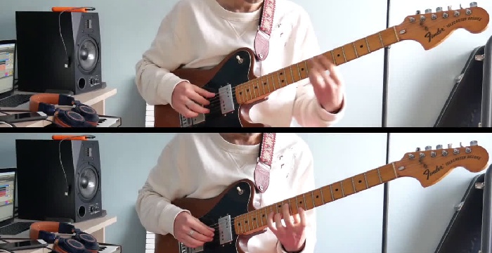 In addition to transcriptions for each track, you’ll have access to video versions of Beau playing his parts along with boosted audio from the original EP stems. If a song has multiple parts at the same time, you’ll be able to toggle between one or the other, or see a version where they’re both together. See the sample below for that experience.